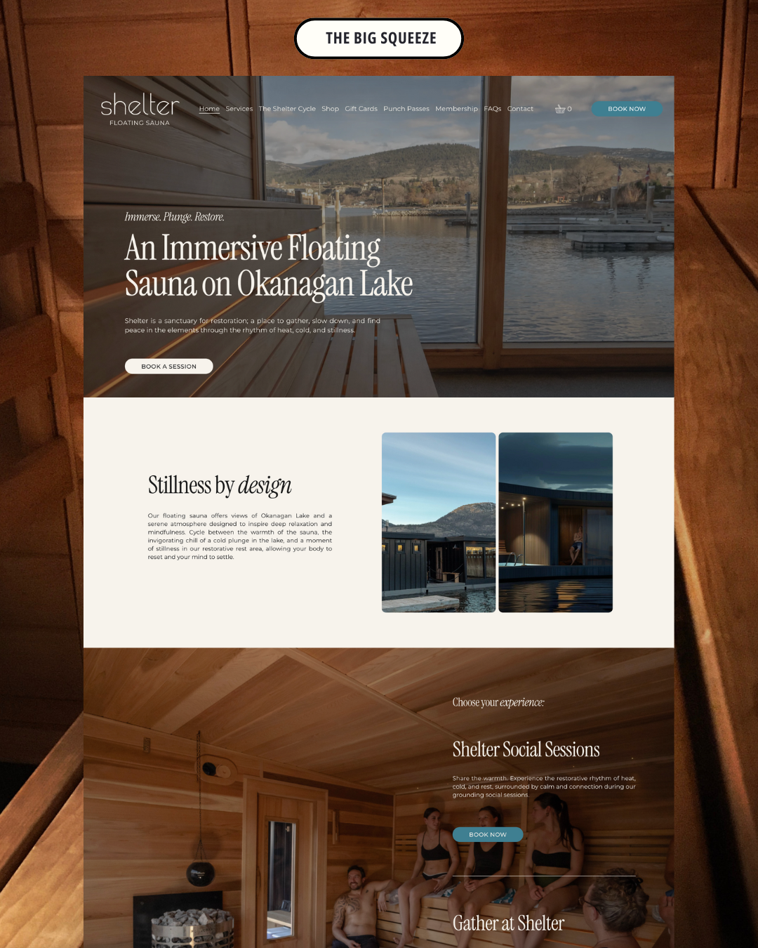 We partnered with Shelter Floating Sauna to bring their new website to life and translate the feeling of their on-the-water sauna experience into a calm, story-driven digital space. The goal of this project was to capture Shelter’s essence online, creating a space that felt grounding, restorative, and deeply connected to nature.